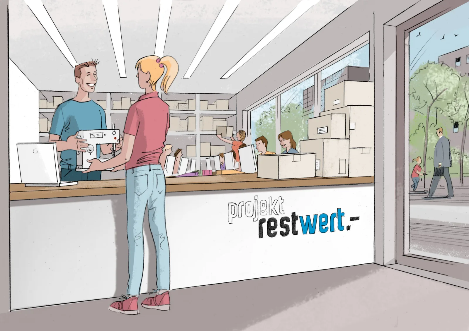Hast du zu Hause gebrauchte Gegenstände und möchtest diese gerne verkaufen? Das Projekt Restwert übernimmt den kompletten Aufwand beim Verkauf deiner Gegenstände auf einer Online-Handelsplattform und überweist dir 50% des Verkaufspreises zurück.